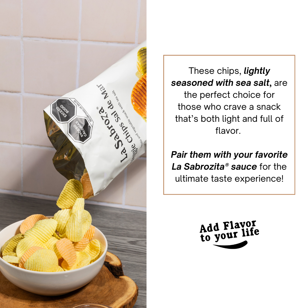 These chips, with a touch of sea salt, are the perfect choice for those looking for a light but flavorful snack. Serve them with your favorite La Sabrozita Salsa for maximum enjoyment!